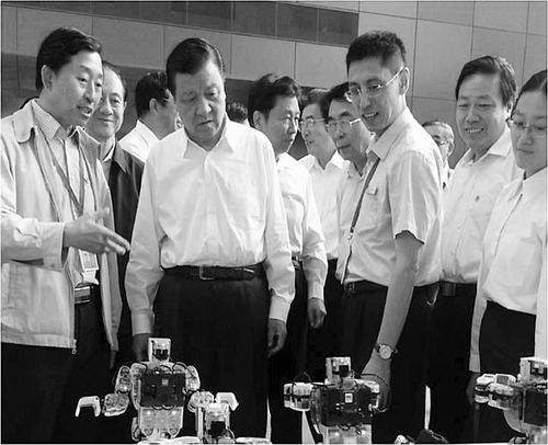 刘云山等中央领导参观全国科普日自动化所展项。