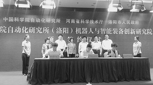 自动化所与河南省科技厅、洛阳市政府共建机器人与智能装备创新研究院。