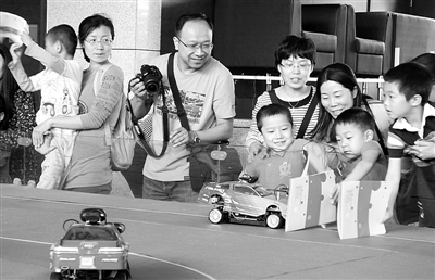 智能小汽车遇障急停,小朋友们玩得不亦乐乎。
