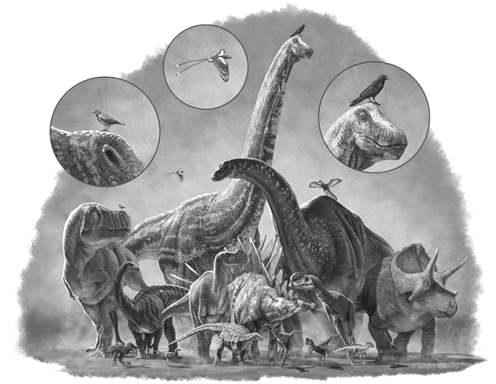 巨大的恐龙走向灭亡,而最终变为鸟类的小家伙却幸存下来。图片来源:Julius Csotonyi