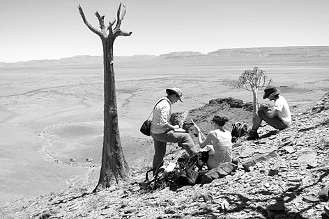科学家在纳米比亚南部研究化石。图片来源:Fred Bowyer