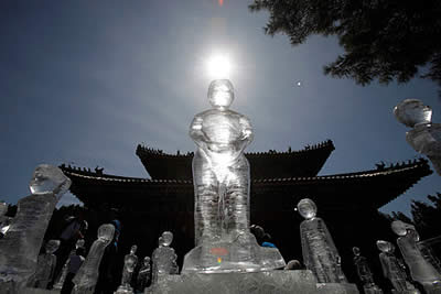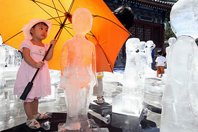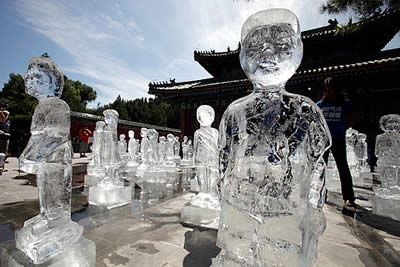 在哥本哈根大会开幕倒计时100天之际,国际环保组织绿色和平用取自长江、黄河和恒河三条大江源头的冰川融水制作成冰雕,于8月28日在北京和印度新德里同时展出。环保组织期望藉冰雕的迅速融化,来凸显喜马拉雅�0�1—青藏高原地区冰川的加速消融,并呼吁各国领导人在哥本哈根大会上达成拯救人类气候的全球协议。