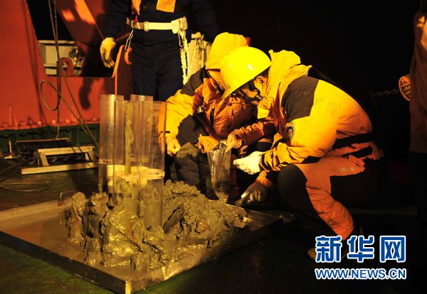 连日来,中国科考队员已多次在白令海不同地点的海底成功采到了深海沉积物,最深处达水下3900多米。面对这些来自深海的泥巴,考察队员们首先是观察记录,将海泥的颜色、味道、软硬程度、颗粒物大小、特殊颗粒物等仔细记录下来,并拍下照片。