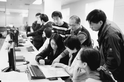 图为中国资源卫星应用中心技术人员在进行在轨测试。苗文新摄