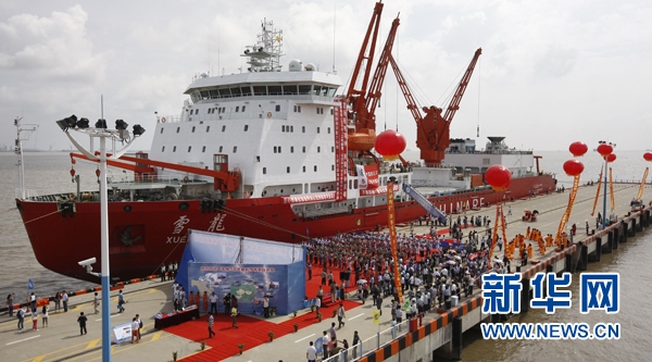 中国第五次北极科学考察队圆满完成科学考察任务,9月27日乘坐“雪龙”号极地科学考察船凯旋归来,国家海洋局和上海市人民政府在中国极地考察国内基地码头共同举行了热烈的欢迎仪式。