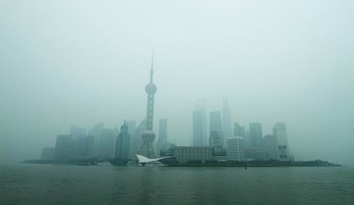 “雾”锁上海滩。新华社供图