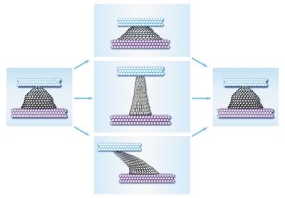 有了这次意外收获,团队决心有意识地在该领域做深入研究。经过两年上百次的实验,并请麻省理工学院合作人员通过计算机进行模拟获得支持数据,最终他们发现,在极小的纳米尺度下(小于10纳米),固态金属通过任何受力形变,是可以恢复原形的。而宏观的金属材料变形机制通常遵从的经典位错滑移和孪晶变形理论,却无法解释这个现象。