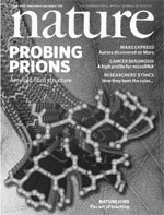 阿尔茨海默氏症、朊病毒疾病和其他神经退化疾病与被称为淀粉体的非溶性蛋白纤维有关。实践证明,收集形成这些蛋白的结构信息很困难。现在,三个小组取得了突破,他们在本期《自然》上报告了解决这一问题的各种不同方法。本期封面所示为由酵母朊病毒蛋白Sup35形成的一种与淀粉体相似的小纤维的“脊梁”的原子结构。为获得这一结构,Nelson等人对淀粉体的微晶体进行了X射线晶体学研究;Krishnan和Lindquist利用很多方法来研究淀粉体核心的折叠;Ritter等人确定了一种细丝菌的有感染能力的HET-s朊病毒的构造。Christopher Dobson对这么多数据能为我们提供哪些关于朊病毒和淀粉体在患病状态和健康状态中的形成情况的信息进行了思考。