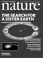 试图观测太阳系外类似地球的行星的工作因这样一个事实而变得复杂:它们与其绕之运行的恒星相距仅几分之一弧秒,而且亮度比后者要小100亿倍。但这没能阻止研究人员设计搜索和观测这种行星的探测器,如本期Nature所介绍的“新世界观测者”,它与其竞争对手不同的是使用两个飞船:一个起恒星阴影的作用,将一个花瓣形状的掩星放在第二个探测器的光路径中,第二个探测器是一架利用传统光学系统观测所透过的光的望远镜。封面所示为用一个“新世界观测者”来观测时我们自己的太阳系的样子。小行星带很显著,木星和土星也可以看得见。所插入的小图是我们更为熟悉的一个视图,以供对比。“观测者”的设计者Webster Cash说,利用现有技术就有可能以合理的预算制造出这种观测设备来,而且它是有可能成功使用的。