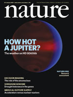 太阳系外行星 HD 80606b上的天气状况 人们已经知道很多“热木星”类的太阳系外行星。它们的性质各不相同,但几乎所有都被认为是旋转同步的,这样同一半球便会始终面向其母星。HD 80606b打破了这一常规。它是一颗轨道极其异常的热木星,不是旋转同步的。这使它成为一个有吸引力的观测目标:该行星在近星点(距其主星最近的点)时温度上升近1000倍。利用斯皮策太空望远镜在近星点所作观测,让我们首次有机会看到一颗太阳系外行星上随时间变化的“天气”状况。其8mm(近红外)亮度温度在6小时内从800K上升到1500K。研究人员探测到一个次蚀现象,这一结果帮助将该行星的质量确定为约为木星质量的4倍。本期封面图片所示为计算出的来自该行星的光辐射。 高粱基因组完成测序 本期Nature发表了高粱的基因组序列。高粱是一种谷物,作为粮食、饲料、纤维和燃料作物广泛种植。它耐热、耐旱,是西非萨赫勒地区很多人口的一种主食作物。将该基因组与玉米和水稻的基因组所作的对比,为了解草本及C4植物光合作用(这种光合作用在高温时尤其能够高效吸收碳)的演化提供了线索。另外,可能对高粱的抗旱性能有贡献的蛋白编码基因及miRNAs也可能被找到。高粱产量的提高一直落后于其他作物,其基因组序列的获得有可能为该作物的改良产生非常重要的促进作用。 自然杀手细胞也有免疫记忆 最近的证据表明,同适应性免疫系统的细胞毒性T-淋巴细胞一样,传统上被看作先天免疫系统构成部分的自然杀手(NK)细胞也有一个免疫记忆。现在,这一点已经得到实验证实,相关实验是在一个生理学环境中进行的,该环境即在小鼠巨细胞病毒感染过程中NK的病毒特异性反应。在最初感染后,NK细胞在脾脏和肝脏中增殖了1000倍;这些细胞留在免疫系统中数月时间,而且在被注射进其他小鼠体内时还使后者也具有了病毒抵抗力。这一结果对于疫苗设计以及关于适宜性免疫与在演化上更古老的先天免疫之间关系的研究工作都是有参考意义的。 大肠杆菌疫苗的作用目标 肠毒性大肠杆菌是发展中国家最常见的腹泻原因,也是旅行者腹泻的主要原因。粘附到宿主细胞上是这种及很多其他种细菌病原体致病所必需的。现在,研究人员发现了大肠杆菌的一个新的黏附机制,该机制依赖于体内分泌的蛋白EtpA。该蛋白与细菌鞭毛顶端的鞭毛蛋白分子的保留区域发生相互作用,在那里它形成细菌与宿主细胞之间的一个黏附分子桥。这一发现是证明EtpA(以及保留下来的鞭毛蛋白配体)有可能是针对大肠杆菌及其他运动病原体的疫苗的有效抗原目标的又一个证据。 与黑素瘤相关的基因突变 导致MAPK信号作用发生组成性激发的B-Raf和N-Ras的突变,已在很多种黑素瘤(包括良性的和恶性的)中以高频率被发现。然而,它们尚未在葡萄膜黑素瘤(在使眼睛产生颜色的细胞中产生)或蓝痣黑素瘤(一种良性的蓝—黑色痣)中被发现。现在,对活检样品进行的一项基因筛选表明,这些黑素瘤亚型在G-蛋白阿尔法亚单元GNAQ上表现出频繁的激发突变,而且导致MAPK通道的激发。这一结果表明,GNAQ下游的信号作用成分是潜在的治疗目标。 真实世界中的DNA修复 在实验室中,研究人员经常将细胞暴露于高剂量的紫外线中,以测量它们对DNA损伤的反应。但在有机体暴露于连续的或间歇的低剂量紫外线的真实世界中会发生什么情况呢?关于环境相关的紫外线水平对酵母细胞的影响的一项研究工作表明,细胞中存在一个DNA系统,该系统很敏感,足以在暴露于低剂量紫外线之后产生反应。这个系统即RAD6-RAD8-RAD5复制后修复通道。当复制叉被中断时,通过阻止过量单链DNA的产生,它允许细胞在其DNA受损时对其进行复制,从而避免抑制增殖的一个细胞反应的激发。 (田天/编译,更多信息请访问www.naturechina.com/st) |