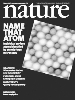 “动态力显微镜”(DFM)是通过探测一个原子力显微镜(AFM)的振荡尖和一个表面之间相互作用来工作的,它已经发展到了对绝缘体、半导体和金属表面的探测达到真正原子分辨率的程度。在本期Nature发表的一篇具有里程碑意义的研究成果中,该方法被用来进行一个多元素体系中单个原子的化学识别。该方法涉及对被探测原子与AFM尖部之间短距离化学力的精确量化,它能为低温及室温环境提供一个可靠而通用的识别工具。本期封面所示为由硅原子、锡原子和铅原子按相同比例在一个硅(111)基质上形成的一种表面合金的一幅形貌图。这种原子级的识别方法在如催化、材料科学和半导体技术等广泛的研究领域都可能找到用武之地。
