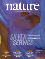 本期封面所示为“Through the Looking Glass”的一个细节内容,它是由Kate Nichols(TED Fellow计划的一个资助对象)制作的一个大型玻璃艺术品,是用银纳米颗粒作为“颜料”创作出来的。作品的颜色来自金属颗粒中电子的振荡(局部化的表面“等离子体激元”的共振)。这些颗粒的“等离子体激元”性质,使它们对于各种成像、传感和可再生能源技术来说很有吸引力。但那些小颗粒(直径不到10纳米)对很多自然系统和人造系统可能更有意义。在这个尺寸上,当它们接近量子领域时,我们关于它们的“等离子体激元”性质怎样变化的知识变得相当模糊。Jonathan Scholl及其同事对尺寸在量子大小范畴内的单一银纳米颗粒的“等离子体激元”性质进行了研究。他们利用电子显微镜和光谱技术,在直径从20纳米到不到两纳米的范围内将一个颗粒的“等离子体激元”共振与其大小和几何形状关联了起来。