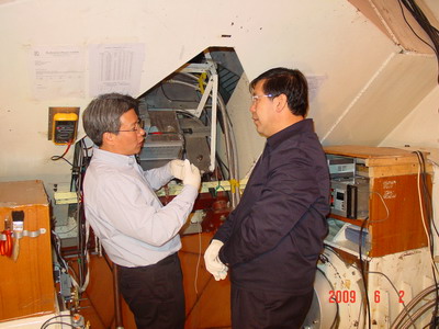 阴和俊听取杨戟台长介绍13.7米望远镜前端系统 6月2日上午,中国科学院副院长阴和俊到紫金山天文台青海观测站视察,院高技术局副局长董永初、兰州分院副院长杨生荣、青海省科技厅厅长解源、海西州政府副秘书长赵永寿等陪同视察。紫金山天文台常务副台长杨戟、党委书记鲁春林接待了阴和俊一行。 阴和俊一行听取了杨戟关于13.7米毫米波射电天文台望远镜的运行开放技术创新、毫米波/太赫兹天文和探测技术的研究进展、地基天文环境与空间碎片监测研究系统等方面的工作汇报,视察了13.7米毫米波射电天文望远镜、空间碎片观测望远镜,现场了解建站背景、科研项目进展、创新成果和发展规划,并作重要指示。临行前,阴和俊为青海观测站作了 “柴达盆地一慧眼,眺望苍穹细辨天” 的题词。 |