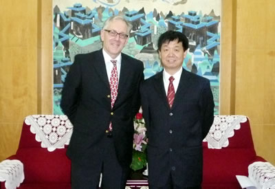 李家洋(右)会见新西兰驻华大使伍开文 7月17日,中科院副院长李家洋在京会见了新西兰新任驻华大使伍开文(Carl Worker)先生,与其就如何加强两国在科学技术和科技人才培养方面的合作广泛交换了意见。双方一致认为,科技合作是促进双边关系发展的重要基础,中新两国在农业、畜牧业、生态环境可持续发展和生物医学等领域有广泛的合作前景。伍开文大使特别介绍了新西兰的一些优势领域,称有些方面新方还应加强必要的宣传并欢迎李家洋副院长在适当时候访新,以推动双边科技合作关系的发展。 国际合作局副局长曹京华参加了会见。 |