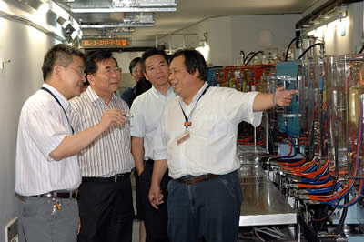 8月15日上午,中科院常务副院长、党组副书记白春礼在中科院上海分院副院长朱志远、中科院基础科学局副局长刘鸣华等人的陪同下,到上海应用物理所视察上海光源。 白春礼指出,上海光源工程的高速度、高质量的建设成果,体现了上海光源精神,也凝聚着工程建设者们忘我工作的精神,值得今后不断赋予新的内涵,不断发扬光大。 白春礼强调,上海光源要在“四个一流”上进一步做好工作。第一,在工程建设阶段已经打下了“一流的管理”的基础,不仅要保持下去,还要在验收以后继续加强管理工作,把上海光源运行好。第二,上海光源的“一流的效益”主要体现在两个方面,一是不断满足用户需求,使光束线上产出重大应用成果,二是光源本身的能力得到很好地使用,有好的投入产出比。这就需要院、所共同努力,积极争取上海光源工程二期早日批准、动工,使我们这么好的光源能够发挥更好的效益。第三,上海光源上要出“一流的成果”,目前在工程没有正式验收之前的试运行阶段,已经出了很好的成果,说明上海光源非常重视用户群的建设——这也是立项时国务院领导所关注的,现在看来已经“供不应求”。高质量光源和高质量用户是保证上海光源产出高质量成果的两个重要条件,因此要继续加强用户工作,把国内乃至国外最好的用户吸引到这里来,做出更好的成果——同时也要考虑与北京、合肥光源在用户疏导上的协调,使三台光源能够各得其所,发挥最大的效益。要提供更好的用户服务、更好地与用户交流,使光束线的配套能力更加完善,诸如配套一些计算能力,使用户能够当场获得结果、当场调整实验,有利于用户做出更好的成果。第四,上海光源工程的建设培养、汇集了一批特别能战斗、特别能吃苦、素质好、技术高的“一流的人才”。大科学工程要找到一个合适的领军人才非常不容易,在工程建设阶段院部对这类人才落实了一些特殊政策;今后的发展也需要高质量的人才,对此应该给予更多的关注,以不辜负国家对上海光源的厚望,也不辜负所有参加上海光源建设的同志们所付出的辛勤劳动。我们要共同努力,培养凝聚一流的人才,实行一流的管理、产生一流的效益,做出一流的成果。 白春礼一行听取了上海应用物理所所长、上海光源工程总经理徐洪杰关于上海光源运行和开放情况的汇报,实地察看了上海光源储存环、增强器、直线加速器和首批七条光束线实验站。最后,白春礼在实验大厅和现场的科技人员合影留念。