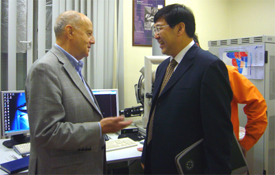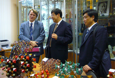 阴和俊在俄科院晶体所展室考察 应俄罗斯科学院的邀请,中国科学院副院长阴和俊于9月14日至19日率中科院代表团一行6人访问了俄罗斯。 访问期间,阴和俊与俄罗斯科学院副院长格里戈里耶夫举行了会谈,就中俄两院科技及科技合作的现状与进展深入地交换了意见,并重点探讨了双方今后拟继续加强合作的方向和领域,为此需要进一步采取的合作形式和重要举措。在莫斯科和圣彼得堡访问期间,阴和俊一行分别参观了俄罗斯科学院的普通物理所、晶体所、硅酸盐化学所和约飞物理技术所,还参观了莫斯科动力学院专门设计局和法扎特龙公司。 陪同阴和俊访俄的有:中科院秘书长李志刚、电子所所长吴一戎、光电研究院副院长王宇等。