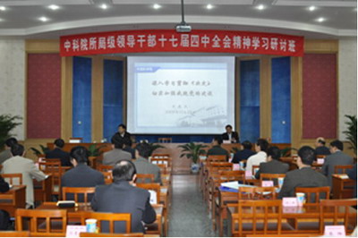为深入学习贯彻党的十七届四中全会精神,加强和改善中科院科研院所党的建设,根据院党组安排,10月27日至28日,中科院人事教育局、京区党委、院党校联合举办了中科院所局级领导干部十七届四中全会精神第一期学习研讨班,59名分院党组书记、北京分院所属单位党委书记、京外部分研究所党委书记参加了学习,研讨班由中科院党校副校长苗建明主持。