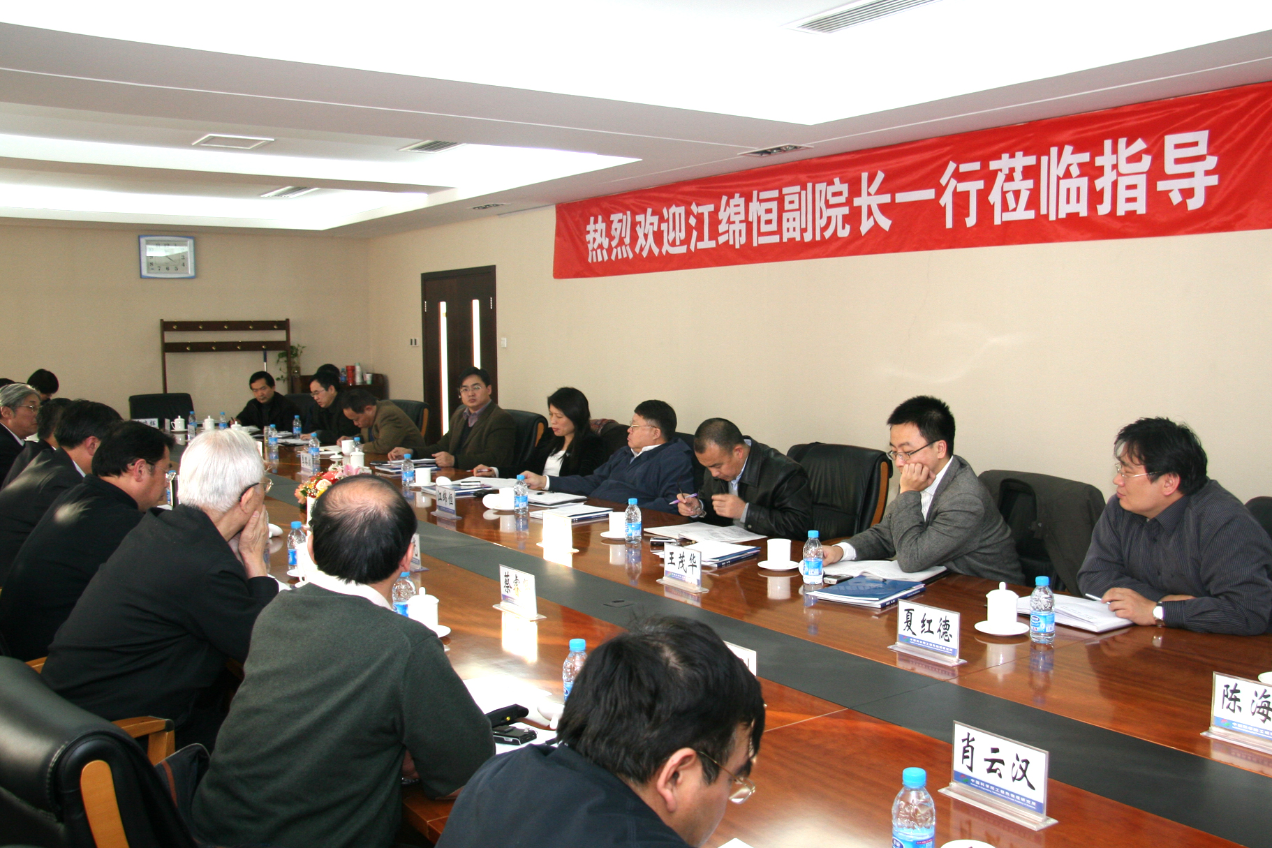 陪同江绵恒调研的还有院高技术局副局长刘桂菊等同志。