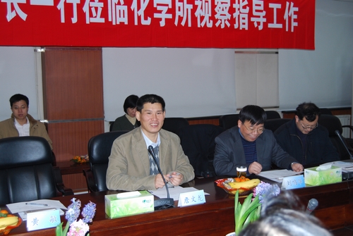 詹文龙对化学所的各项工作给予了充分肯定,对化学所在过去的一年里取得的研究成果表示祝贺,同时也希望化学所继续保持良好的发展态势,继续在做好基础前沿研究的同时,面向国家重大战略需求进行长远布置,继续做出更多象绿色打印制版技术项目这样具有战略意义的工作。随后,詹文龙一行参观了化学所“分子器件研究平台”项目实验室,听取了胡文平研究员对平台建设情况和特点的详细介绍,对平台建设的进一步发展提出了指导性意见。