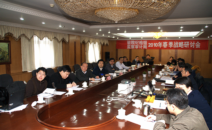 为了进一步理清思路,凝炼目标,优化措施,突出重点,部署推进全年工作,日前驻院纪检组、院监察审计局召开2010年春季战略研讨会。驻院纪检组组长、院党组成员李志刚,驻院纪检组原组长、原院党组成员王庭大出席会议并讲话。驻院纪检组原副组长、监察审计局原局长沈颖同志就建立健全我院反腐倡廉建设制度体系的建议作了重点发言。各室主任根据分工内容作了有针对性的重点发言。