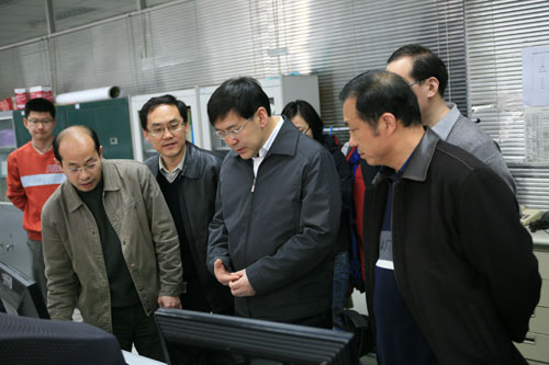 4月16日中午,中科院副院长阴和俊到对地观测中心西区视察青海玉树地震灾害遥感监测工作,听取了中心主任郭华东的工作报告,视察了远程网络数据传输、遥感卫星数据接收和处理、航空图像解译、输出等情况,并对坚守在灾区一线和科研一线的广大人员表示慰问。