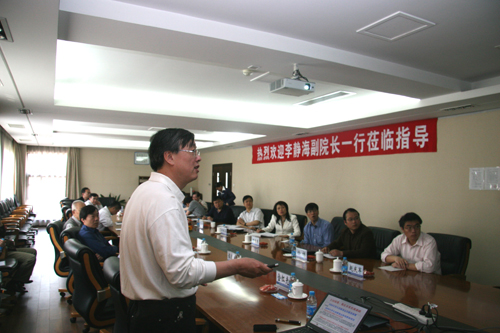 李静海一行在工程热物理所领导秦伟、张平、朱俊强的陪同下,参观了循环流化床实验室、透平机械实验室、压气机实验室、燃气轮机实验室、高强度传热技术实验室,听取了秦伟关于研究所工作的汇报,听取了先进能源实验室肖云汉主任、张哲巅博士、徐祥博士关于中科院能源动力研究中心建设及863重大课题进展情况的汇报,并与相关科研人员进行了座谈。