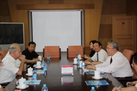 江绵恒副院长也在京会见并宴请了代表团。他向客人详细介绍了中国科学院的组织机构、科技布局、优先发展领域及合作潜力,并就可再生能源研究以及气候变化等热点问题与德方进行了深入探讨。