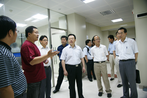 调研期间,谭铁牛一行先后听取了等离子体所党委书记张晓东关于依托EAST国家大科学工程装置卓有成效地开展国际合作的情况汇报、现场考察了聚变研究国际合作重要平台的EAST装置。随后,谭铁牛一行又来到合肥研究院中心机房,详细了解作为e-science 重要支撑的信息化设施工作进展。信息中心主任李晓风研究员向谭铁牛及院信息中心有关领导简要介绍了“十一五”期间,合肥研究院围绕院“优化三大环境,构建五大平台,完善三大体系”目标开展的相关工作和软硬件建设情况。