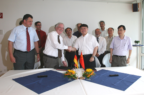 7月20日至21日,代表团等一行考察了于利希研究中心。中心主任Achim Bachem教授和主任委员会成员Sebastian Schmidt教授等与江绵恒副院长一行举行了会谈。Bachem教授向代表团行介绍了在国际金融危机的背景下,德国政府各部门均削减了财政预算,只有联邦教研部的预算得到了增加。包括亥姆霍兹联合会在内的德国各相关科研机构预算在今后五年每年都会保证有5%的增长。Bachem教授还向代表团介绍了于利希中心的基本情况以及中心在健康、能源和环境以及信息技术等领域的具体研究情况。江绵恒副院长表示很高兴能再次在德国与Bachem教授会面,并就上海微系统所与于利希中心相关研究所的近期合作情况与德方交换了信息。在为期两天的访问中,代表团参观了于利希中心下属生物纳米系统研究所基于硅材料的半导体器件研究和生物电子和超导量子干涉器件研究、固体研究所的散射方法研究、神经科学和医学研究所的医学成像物理研究、能源研究所的光伏研究以及超级计算机中心。访问结束时,江绵恒副院长与Bachem教授分别代表上海分院和于利希中心签署了共建上海微系统所与于利希中心生物纳米系统所联合实验室的意向书。期间,江绵恒副院长等还与亚琛工业大学校长Schmachtenberg教授就有关研究所、大学合作研究和中德双边合作等问题交换了意见。