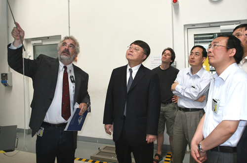 7月22日,代表团等一行考察了莱布尼兹学会下属德累斯顿-罗森多夫研究中心。该中心即将于2011年1月1日正式并入亥姆霍兹联合会。中心主任Roland Sauerbrey教授向江绵恒副院长等一行介绍了该中心的历史、中心加入亥姆霍兹联合会的背景、以及中心在先进材料研究、癌症研究和核安全研究等领域的研究情况。江绵恒副院长就核安全研究等领域与Sauerbrey主任进行了深入的探讨。会谈结束后,代表团等一行考察了放射物理研究所和自由电子激光装置(ELBE)、强磁场实验室以及离子束装置。