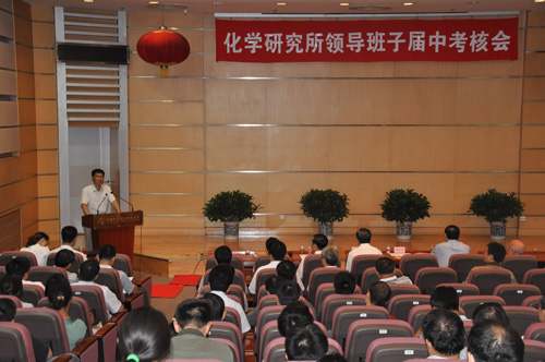 8月25日上午,中国科学院化学研究所领导班子届中考核会在化学所礼堂召开。院党组成员、副院长詹文龙,人事教育局局长李和风,北京分院党组常务副书记、副院长项国英,院办公厅秘书处、院人教局领导干部处、北京分院监察审计处和干部工作处相关领导一行11人出席了考核会。化学所正高级和副高级科研人员、副处长以上管理干部、党委委员、纪委委员、党支部书记、职代会常委近150人参加了考核会。