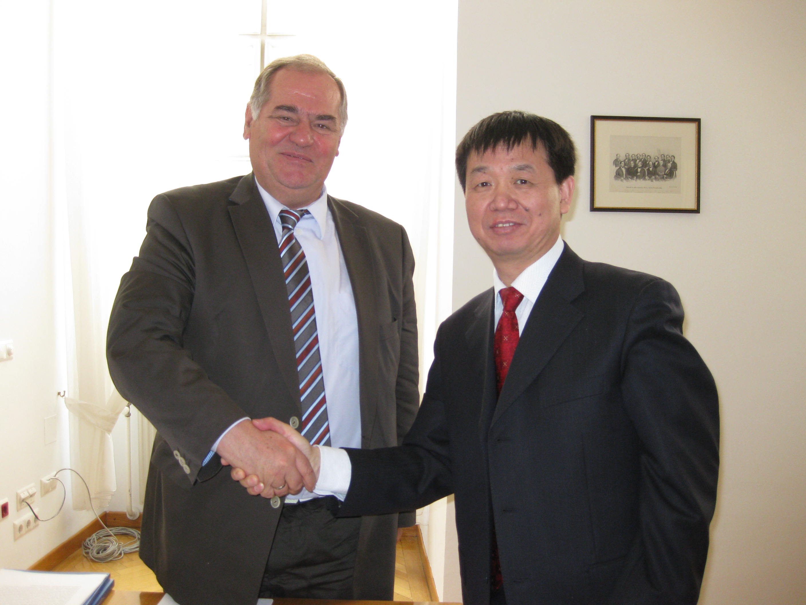 在奥地利期间,李家洋会见了奥地利科学院副院长Arnold Suppan教授。Arnold Suppan副院长介绍了奥地利科学院的历史、研究领域、经费情况、人员组成以及人才计划等情况。在介绍了中科院的相关情况后,李家洋强调,近年来中科院十分重视与中小发达国家加强在有特色的科研领域的合作。目前,两院已在空间科学与量子通讯领域开展了实质性研究合作。他希望今后有更多的中奥科学家充分利用人才计划等交流平台不断拓展合作领域。同时,李家洋副院长邀请Arnold Suppan副院长在方便的时候访问中科院。