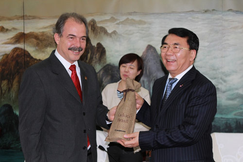 Mercadante部长感谢白春礼的接待,盛赞中国经济的高速和科技进步的突飞猛进,称中国是巴西最重要的贸易伙伴,巴西政府一直高度重视与中国和中国科技界的合作,希望双方在中巴两国《政府间科技合作议定书》框架内,在我院与巴西科技部协议的的推动下,积极落实一些优先领域的具体合作项目。