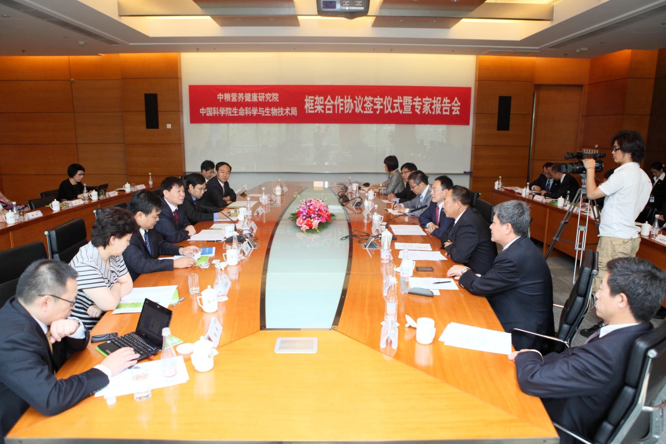 8月23日,中国科学院生物科学与生物技术局与中粮集团营养研究院共同签署了“关于推动生命科学与生物技术及产业发展的框架合作协议”。双方希望利用各自在科技和市场方面的优势,强强联合,推动我国营养健康事业的发展。中国科学院副院长李家洋、中粮集团有限公司总裁于旭波等出席签字仪式并讲话。