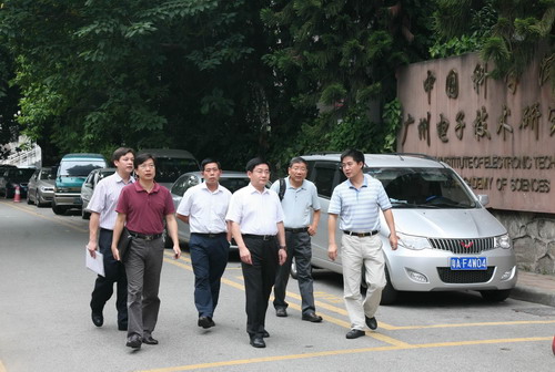 吴建国(右三)在广州分院副院长陈广浩(右一)陪同下考察科研园区