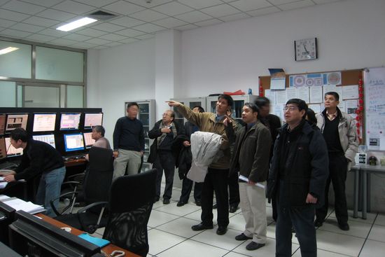 詹文龙一行来到了北京正负电子对撞机中央控制室和北京谱仪控制室,慰问了正在值班的运行人员,包括参加值班的北京谱仪国际合作组(BESIII)的两位意大利科学家,并与他们进行了亲切交谈。