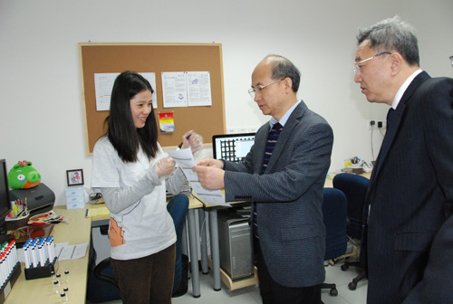 张亚平一行考察了工程心理学实验室、人类嗅觉实验室、视知觉实验室、眼动跟踪实验室、ERP实验室和虚拟现实实验室,听取了实验室负责人对研究背景、实验原理、研究进展及预期工作目标等情况的介绍。