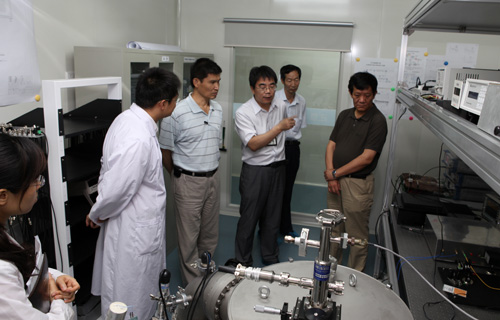 在中心主任郭际,党委书记、副主任王玉林等陪同下,詹文龙对中心测轨站和主控站、时频基准实验室、量子频标研究室等进行了实地考察,详细询问了与“一三五”密切相关科研项目的进展情况,听取了科技人员关于承担的科研工作及近期成果的介绍,并对他们的工作予以充分肯定和鼓励。