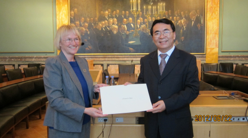 6月21日,白春礼应邀在“工业技术:2012”学术会议上作题为“中国科技创新:从基础研究到工业化应用”的主旨报告,向与会代表系统阐述了中国科技创新现状和科技创新路线图,并简要介绍了中科院概况和国际合作方面尤其是与丹麦等北欧国家之间的合作情况。会后,白春礼顺访了奥胡斯大学,并与Holm-Nielsen校长就中科院与该校在北极环境研究领域开展合作进行了深入的讨论。
