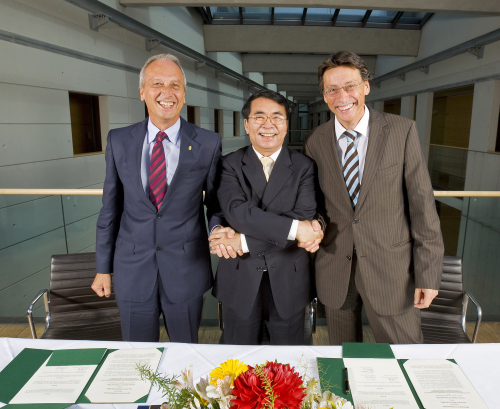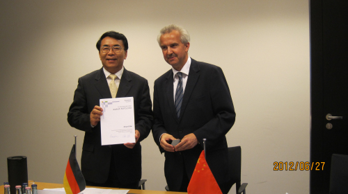 6月26日,白春礼访问了马普学会总部并与Gruss主席进行了工作会谈。白春礼和Gruss回顾并肯定了双方近年来在人才培养、伙伴所建设、战略前沿圆桌论坛以及共建伙伴小组和青年科学家小组等领域的合作,一致同意继续保持并深入发展近四十年的战略合作关系。会谈结束后,白春礼与Gruss分别代表两家科研机构共同签署了“中科院与马普学会高端青年科研人才引进计划”(骏马计划)。这是双方在人才合作培养领域的又一重要举措。同日,德国国家工程院院长Reinhard F. Hüttl教授为白春礼举行了院士证书授予仪式。