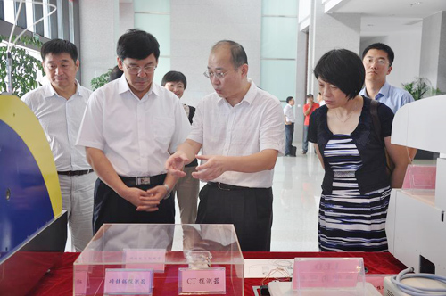 上午,阴和俊一行来到苏州医工所,参观了LED血管内窥镜、血管内超声探头、CT探测器、碳纳米X射线管等科研成果和高亮度LED、全自动血型配血系统、全自动化学发光测定仪等有代表的产业化成果,听取了所长宣明关于研究所筹建工作进展及“一三五”规划的制定实施情况的工作汇报,并与科研骨干进行了互动交流。