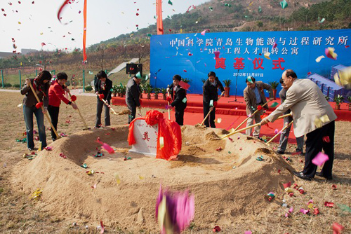 11月7日,中国科学院副秘书长吴建国在中国科学院青岛生物能源与过程研究所为全院第一个“3H”公寓奠基。青岛市政府副秘书长王卫平、青岛市科技局副局长许辉、青岛市国土资源局副局长付荣云、青岛市崂山区副区长于鹏,中科院海洋所党委书记王启尧、青岛能源所所长刘会洲等所领导共同参加活动并奠基。