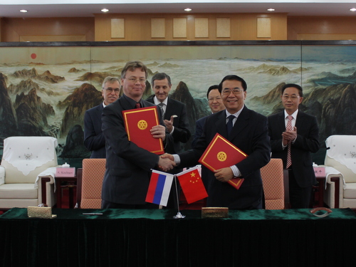 G. Dyakonov感谢中科院的热情接待,希望在研究生交换培养、邀请中科院科学家赴俄讲学以及科技成果转移转化方面开展合作。随后,白春礼代表中科院与G. Dyakonov签署了《中国科学院与喀山国立技术大学谅解备忘录》。