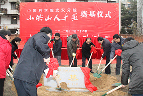 12月28日,中国科学院武汉分院在小洪山科研教育园区举行了院 “3H”工程人才公寓项目“小洪山人才苑”奠基仪式。中国科学院副秘书长吴建国,基本建设局副局长孔繁文等出席仪式并为“小洪山人才苑”奠基培土。