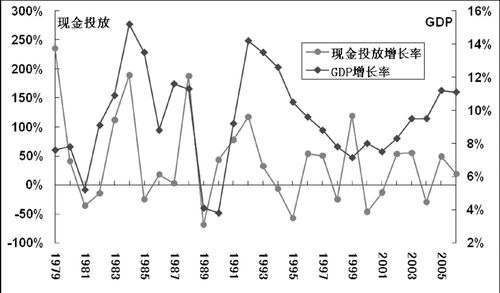 图三 现金投放量增长率与GDP增长率