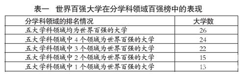 众所周知,世界一流大学必然有一批世界一流的学科,但即便世界顶尖大学,在学科发展上也是各有侧重,不可能所有学科都处于世界顶尖位置。上海交通大学曾对世界一流大学进行分学科领域的比较分析,发现目前在理学、工学、生命科学、医学、社会科学等五大学科领域均位列世界20强的,仅斯坦福大学和剑桥大学2所,在五大学科领域均能进入世界百强的大学仅有26所。还有28所大学凭借着1~2个学科领域的优势跻身于世界一流大学的行列。因此,大学根据各自的办学特色,围绕若干优势学科增强国际竞争力,完全有可能实现跨越式发展。