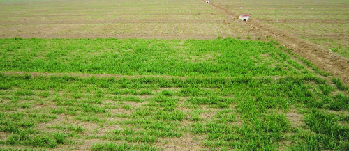 3月30日河北省衡水地区不同播期小麦的缺苗断垄现象