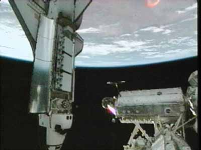 据法新社报道,美国国家航空航天局一位官员称,“奋进”号航天飞机是在格林威治时间21时59分(北京时间26 日5时59分)与国际空间站对接的,比原来计划的时间晚了30分钟。目前,“奋进”号和国际空间站正停留在澳大利亚东南海岸上空大约397公里处。