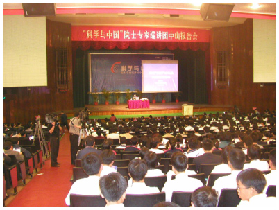 在沈保根副秘书长介绍了“科学与中国”院士专家巡讲团的背景和意义后,贺贤土院士和黄本立院士向1500多位中山市的公务员、科技人员、大专院校和高级中学的师生分别作了题为“自力更生,发展我国核武器事业”以及“科学精神和科学道德-历史与现实”的主题报告。