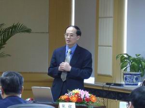 副所长谭民研究员在向专家作学术报告 题目为“多机器协调与控制”